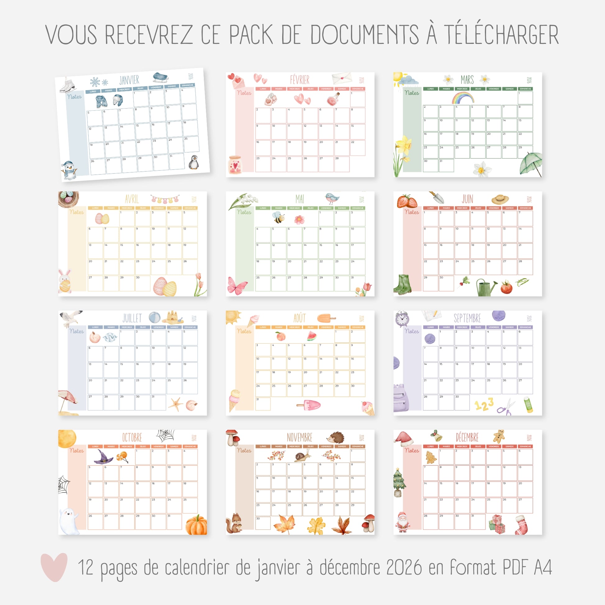 Calendrier 2026 mensuel